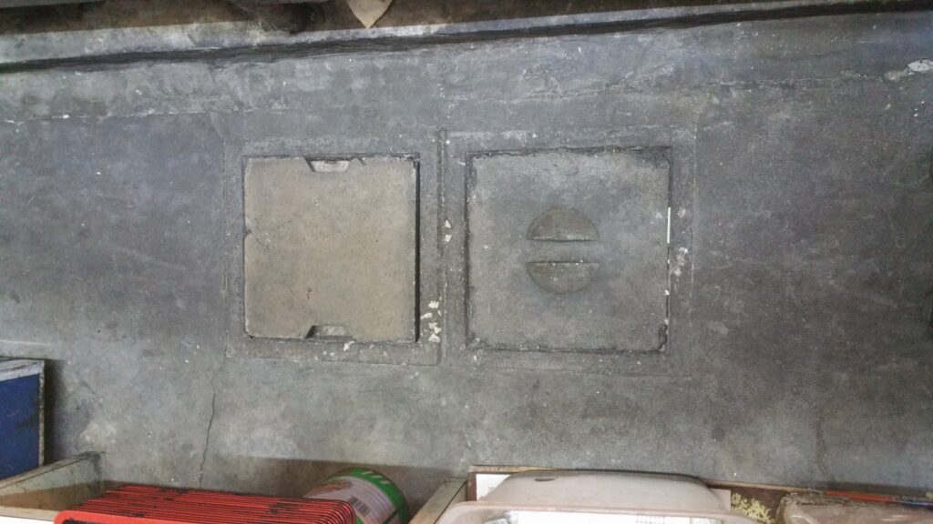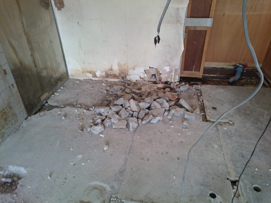 問題視していたグリストラップも設備屋さんとできるだけ不要な配管を撤去し、汚水・汚泥を取り除き砕石を詰めて壊しました。