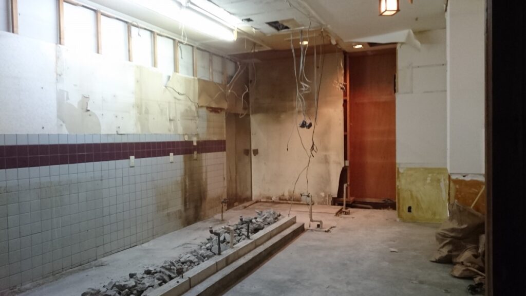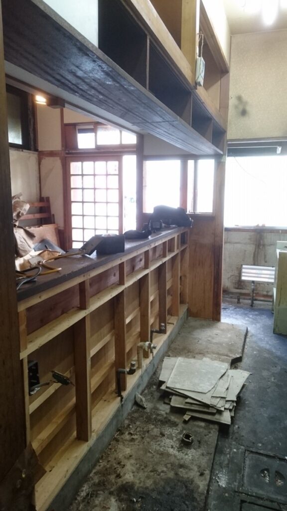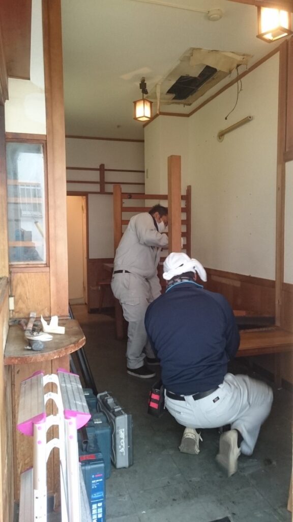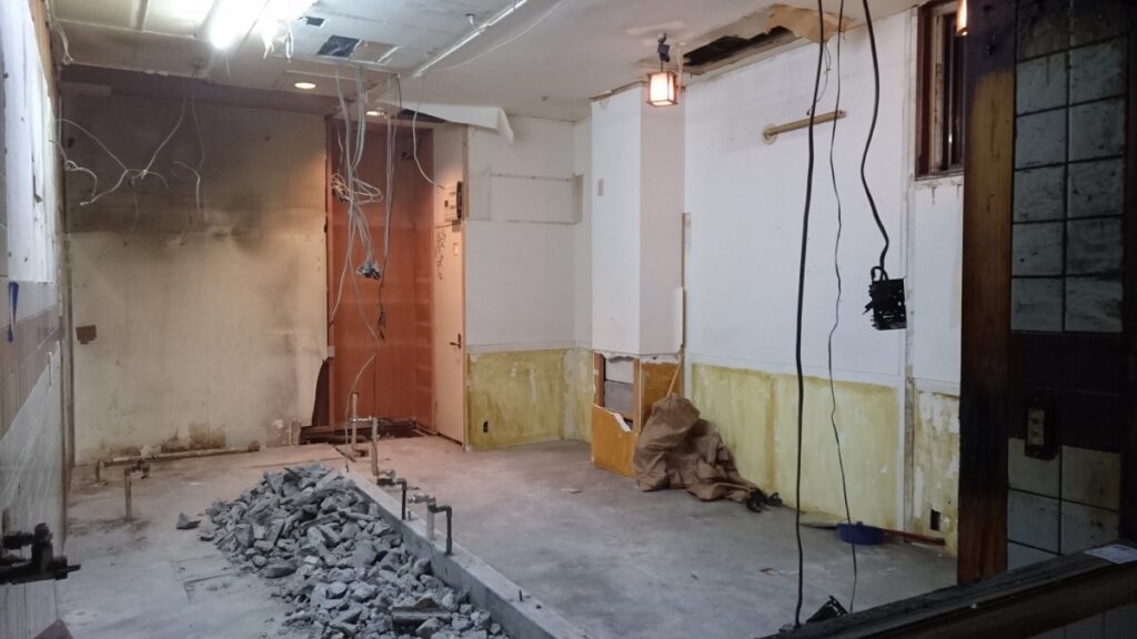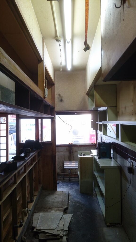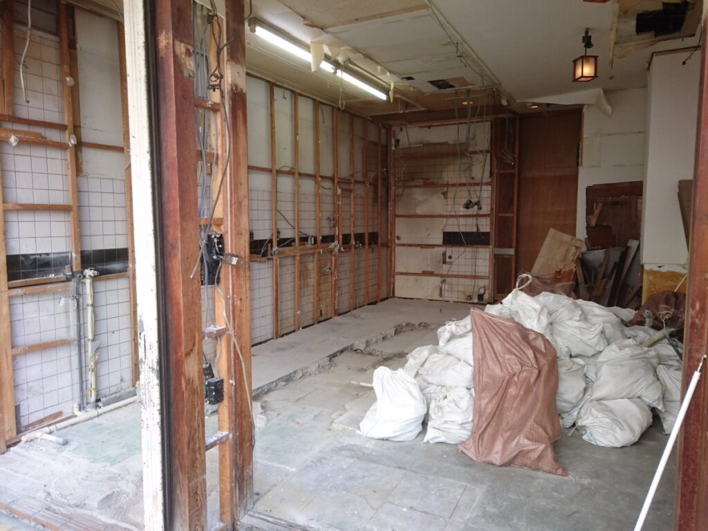 当然、古いお店を壊し、新しいお店にするために『更』にするという意味は大きいですが、それ以外にも解体工事を行うことで、既存店の作り方を知り、スケルトン状態がどうなっているか?を知る必要があります。