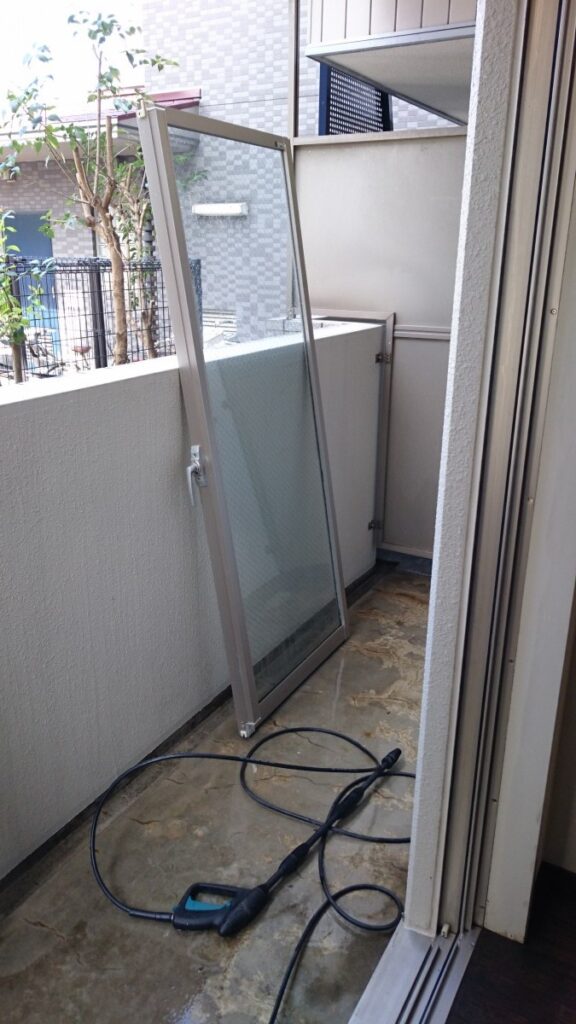 私の場合、サッシもこの通り外して高圧洗浄機で掃除してしまいます。