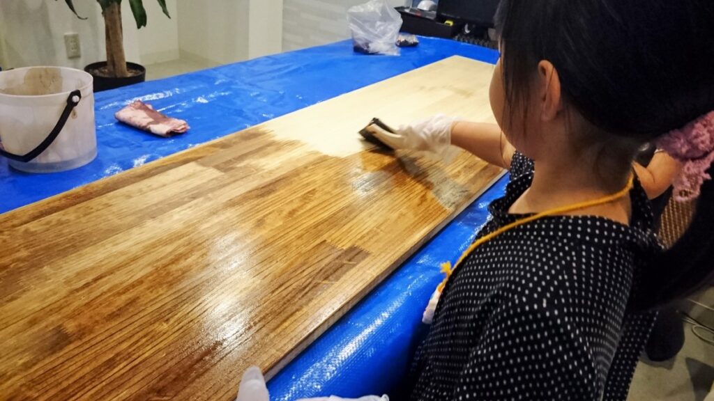 全体的に塗り終わったら布で余分な塗料をふき取ります。