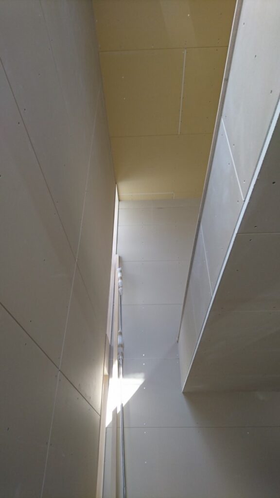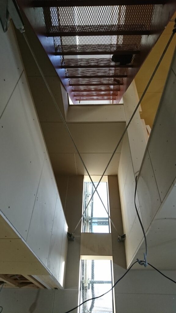その為吹き抜けを多用した間取りとなっております。吹き抜けは光を下階に落とすには有効な手段ではありますが、反面建築の床剛性に問題を抱えます。
