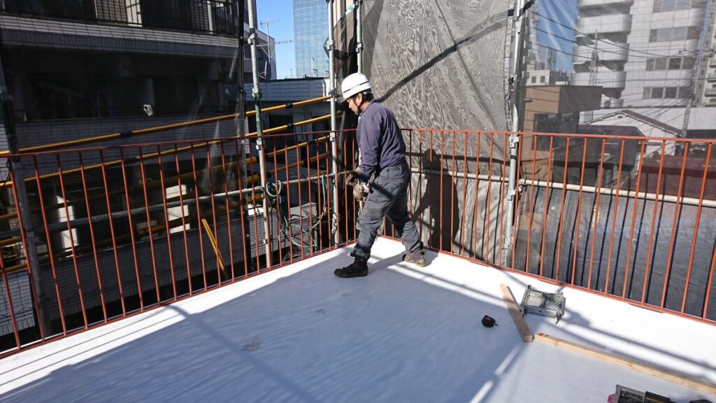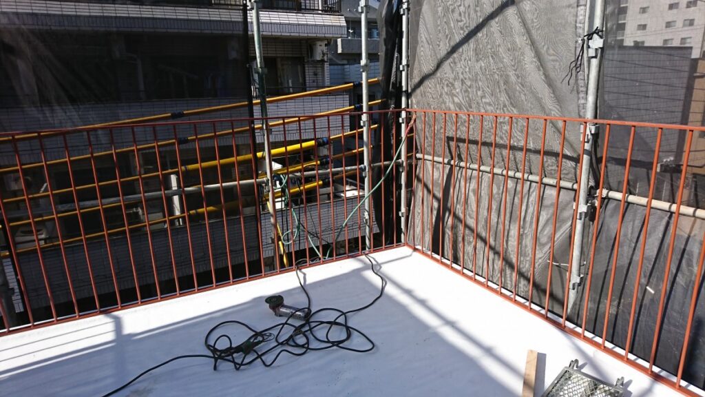 さて屋上では鉄骨屋さんが手すりを設置してくれています。
