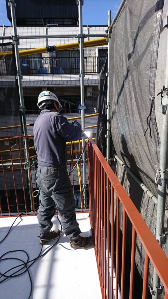 なるべく、ボルトやナットなどの接合が出ないように、通常では避ける現場での溶接作業を行いました。