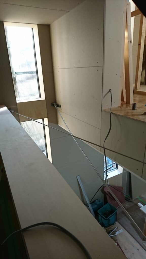 手すり設置前はどこまでも行ってしまいそうな不安定感がありましたが、人の感覚としてスケルトン状態であったとしても、手すりがあることで守られているように感じます。