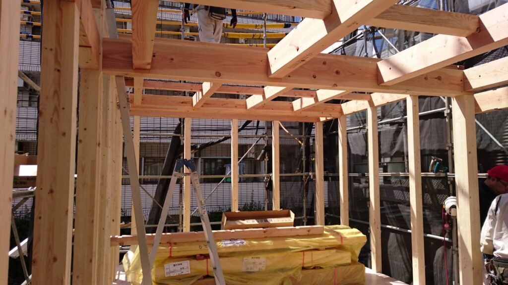 『建前』とか『上棟』とか言われる工事です。(厳密には少しニュアンスがちがいますが・・・。)