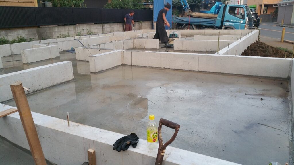 弊社の場合、基礎屋さんが現場のコンクリートの状態を見ながら型枠を解体する期間を相談しながら決めています。