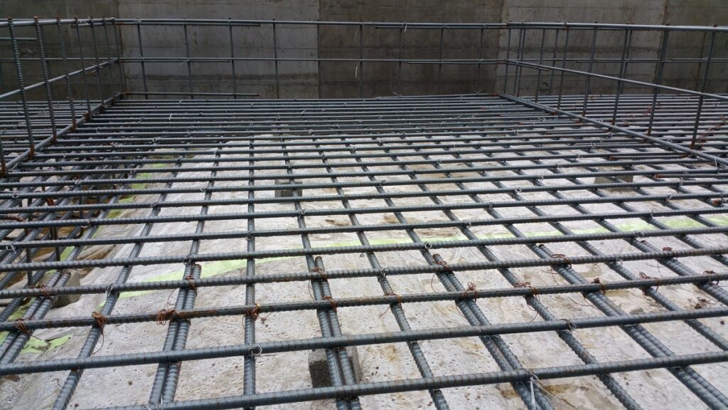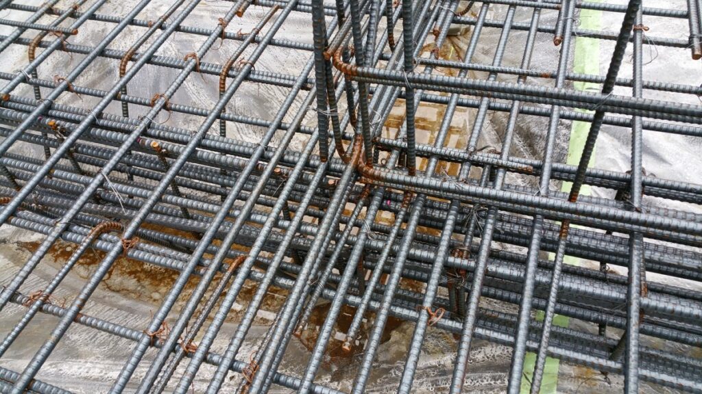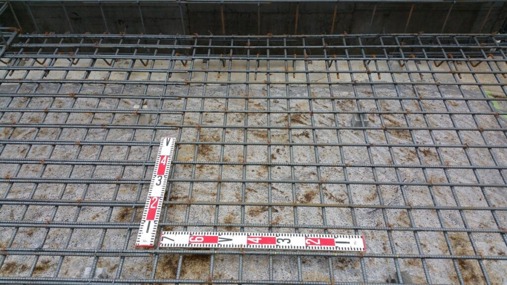 コンクリートの中には縦横に鉄筋が配置され、コンクリートを補強しています。