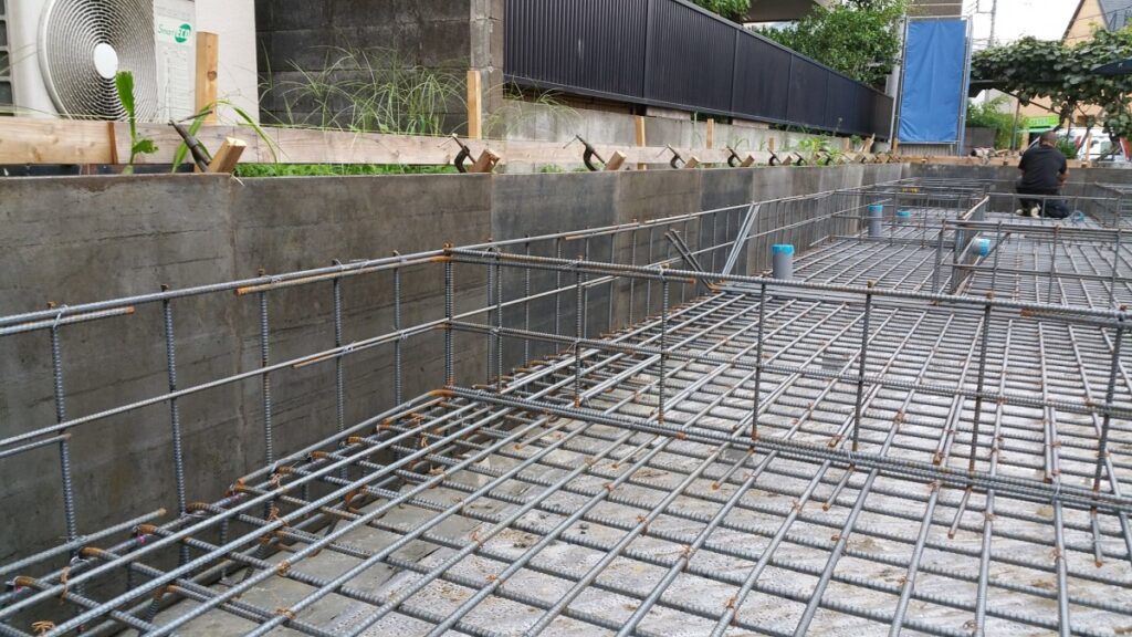この写真をご覧いただけた方の中には『鉄筋が多い』と感じられた方がおられるかも知れません。確かに実際に鉄筋の量が普段の倍近く配置されています。