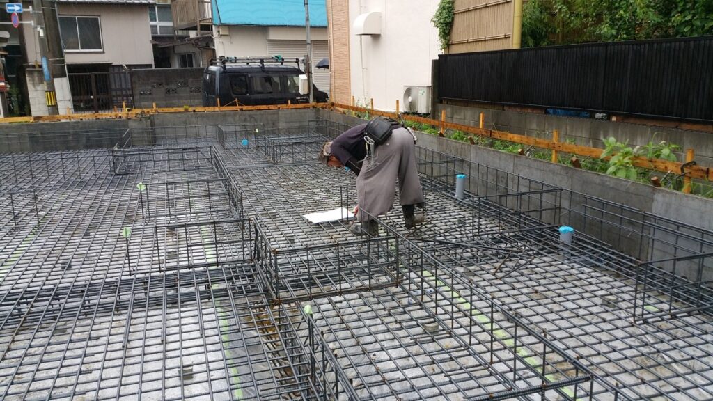 鉄筋が組みあがると第三者機関による『配筋検査』をおこないます。