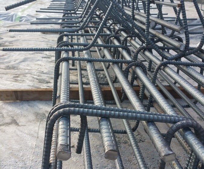 コンクリートの中には縦横に鉄筋が配置され、コンクリートを補強しています。