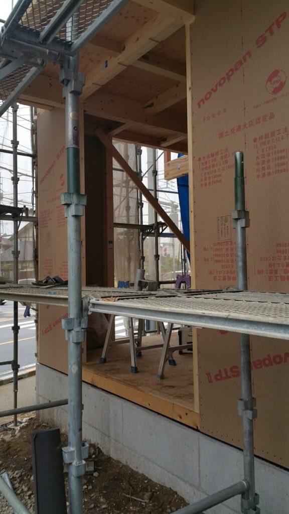 『構造用合板』は筋交いの代わりをします。筋交いのような角材ではなく、面材で強度を取ることになります。イメージ的には2×4の建築に近くなります。