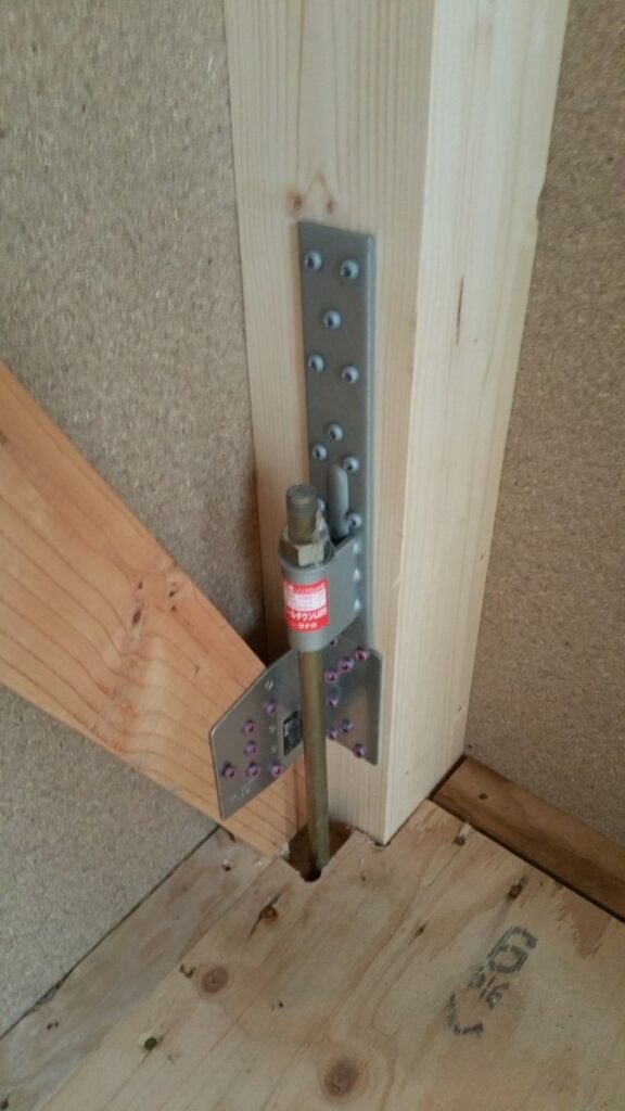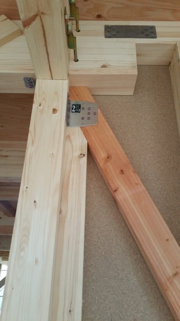 『何が一番大切か?』といわれても選ぶのは非常に難しいのですが、まずは構造をしっかりさせないと次に進めないので、筋交いや構造金物を設置していきます。