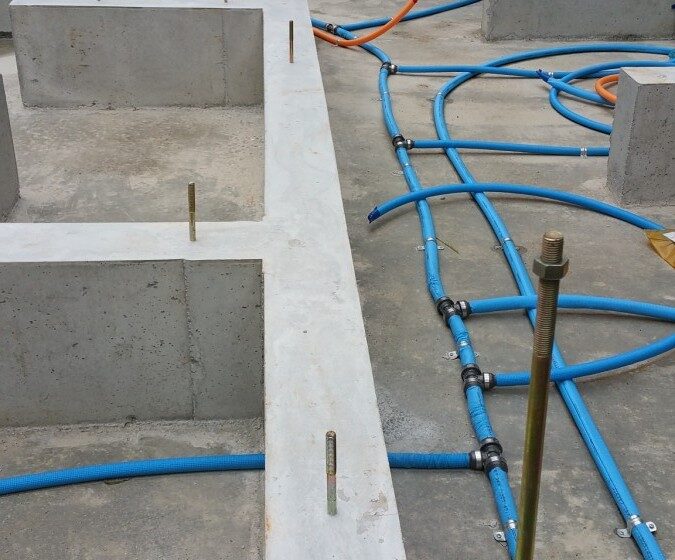 ただ床下に配管を這わせるだけで終わらせる業者さんが多いですが、弊社の設備屋さんは配管が美しく見えるようサドル(≒ホースバンド)を用いて、基礎耐圧盤にしっかり固定してくれています。