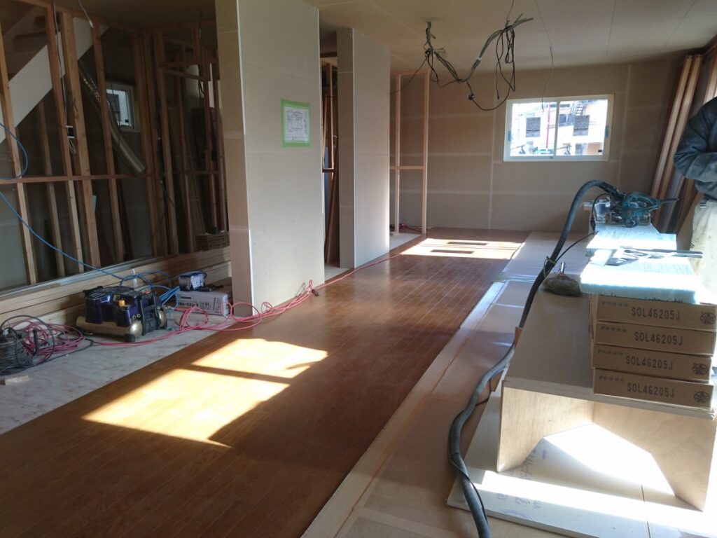 木造耐火建築新築工事(昭島市昭和町N様邸)フローリング工事