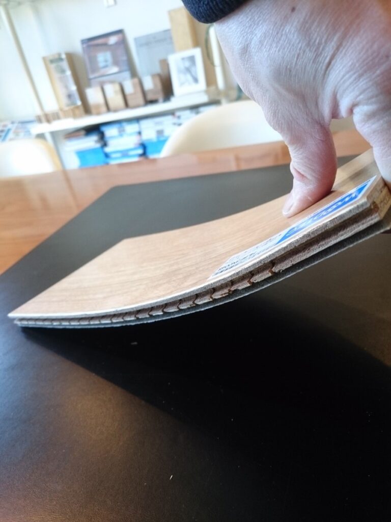 ところが、この『弾力感』が賛否両論なのです。私のお客様で鉄骨ハウスメーカーのHハウスのお住いのお客様はこの弾力感が好きで全てこのフローリングに変えてほしいとのご要望にお答えしたこともあります。