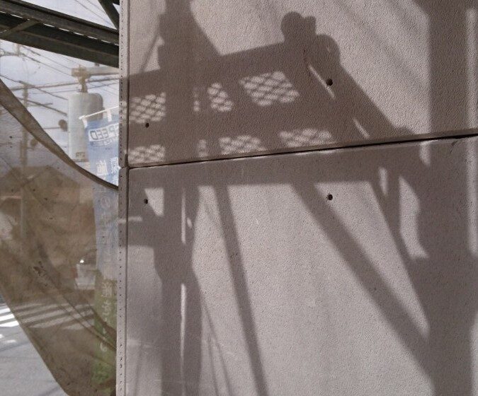 昭島市昭和町 木造耐火建築新築工事現場では、現在、外壁工事をおこなっております。 以前にも少し書いたように、耐火建築と一般建築はかなり違います。 通常では考えられない仕様や納まりが発生してきます。 外壁もその典型的な部分です。