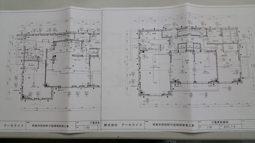 躯体(クタイ)の図面となるプレカット図のチエック。これはかなり重要です。材木がどのように組まれどの程度の隙間があるかによって、キッチンの排気管や2階の排水管の経路を再度検討していきます。木造住宅では設計段階ではここまで細かくは検討しません。