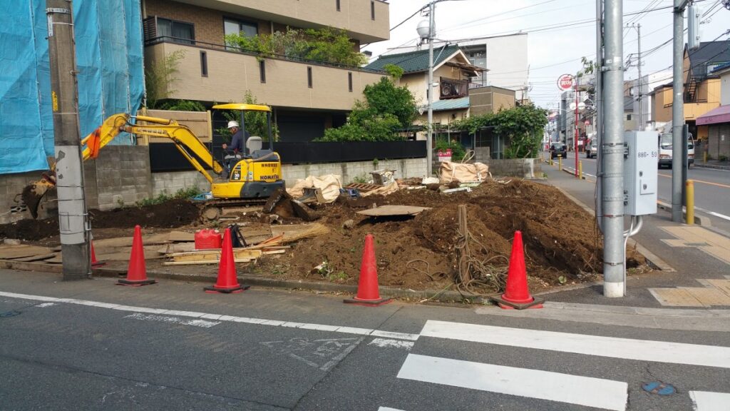 既存建物を解体し、やり方を掛け、基礎を打ち上棟し、外壁工事を行い、外壁完了まで・・・。