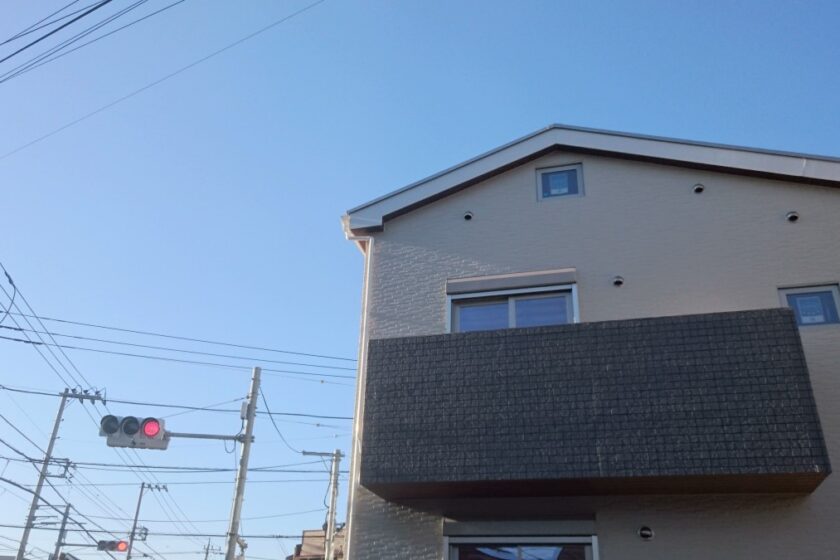 昭島市昭和町で工事を承っております木造耐火建築新築工事現場では、遂に仮設足場を取り払いました。 全貌が露わになった木造耐火建築。