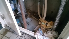 ・配管のサビ溜り=古い建物だと給水管が鉄でできていることがあります。現在ではポリ管と言って樹脂製ですが、昔は普通に使われていました。当然、鉄管の中に水を通す訳ですから、錆びるのは想像しやすいと思います。サビが発生しひどい時はサビを除去すると配管に穴が空いて漏水にも繋がります。これは一番苦戦を強いられる現象です。