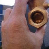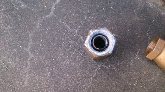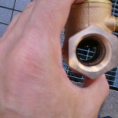 上の中央と右の写真で中の弁の開閉が確認できるおもいますが、今回は長くトラブルがないように真鍮製のバルブに交換しました。