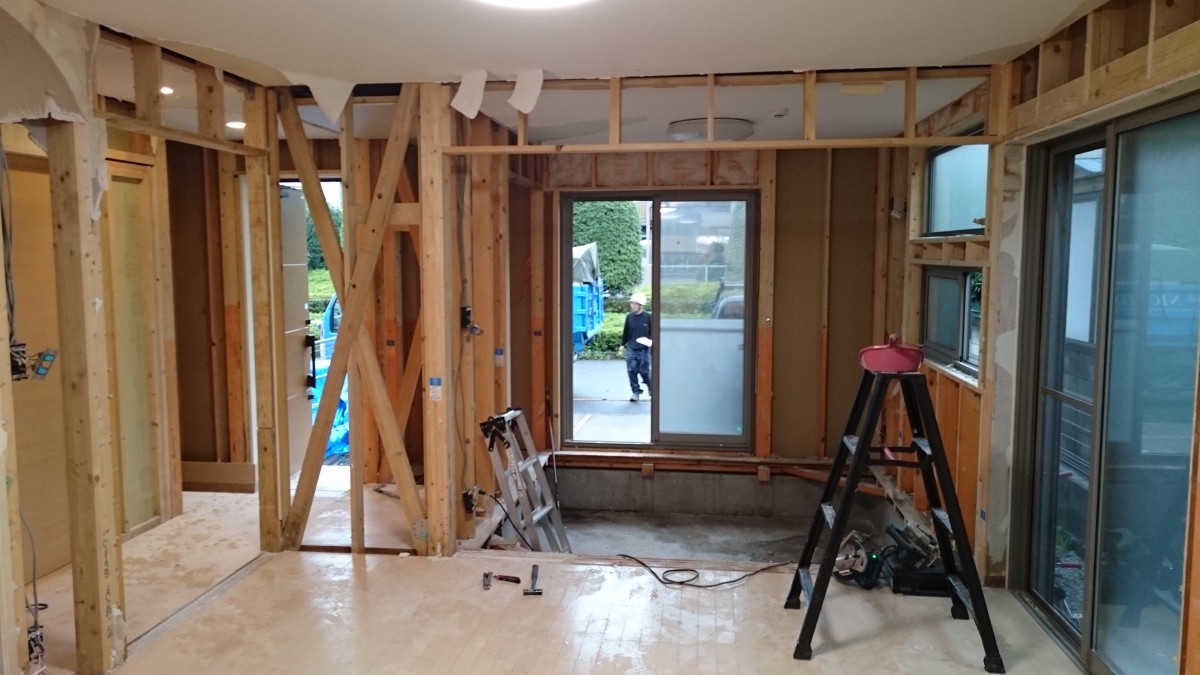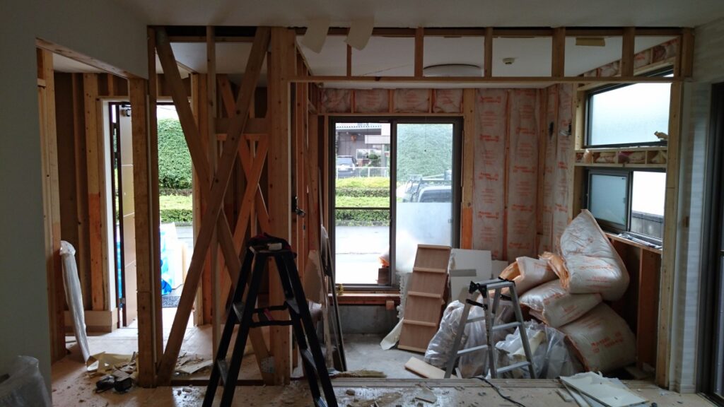 これは、外壁側の内壁を壊し断熱材を剥がした写真です。