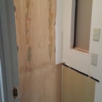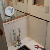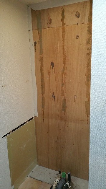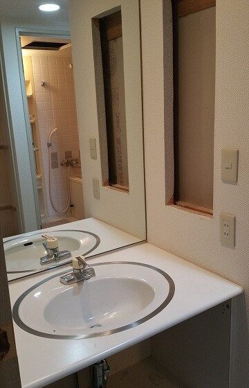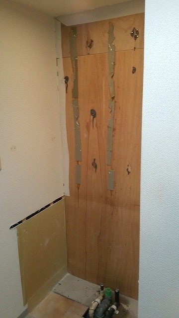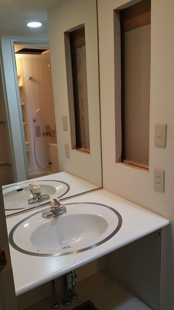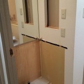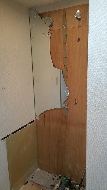 怪我をしないようにゆっくり確実に鏡を取り除いた状態。この工事はっきり言ってブってしまいます。