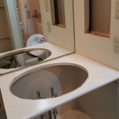 本日も朝から立川市富士見町パークホームズ昭和記念公園のリフォーム工事現場で解体工事を行って参りました。 昨日はキッチンを解体しましたが、本日は洗面化粧台などを解体しました。