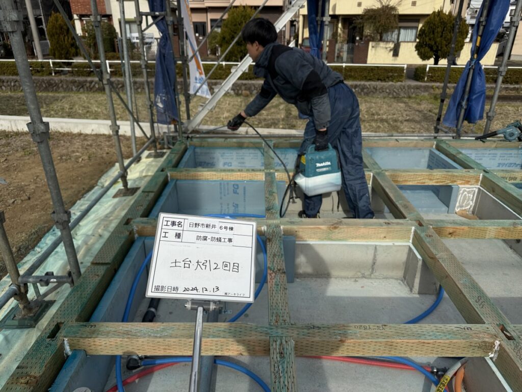 耐久性の向上:ホウ酸水処理=防腐防蟻処理(日野市新井6号棟自社建売分譲住宅)