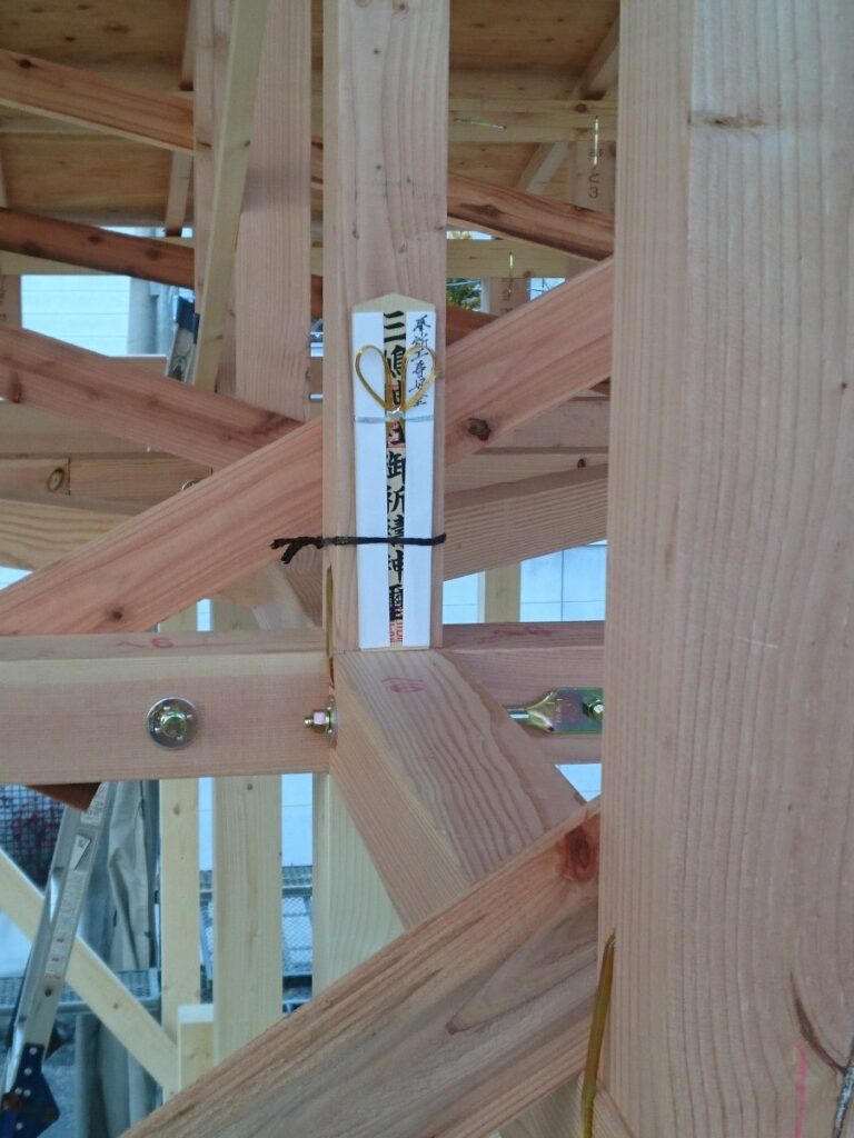 地鎮祭のときに、神主様よりお預かりしたお札も設置します。