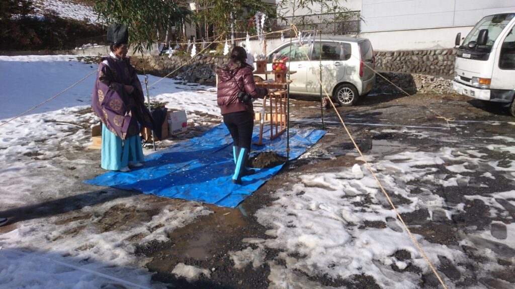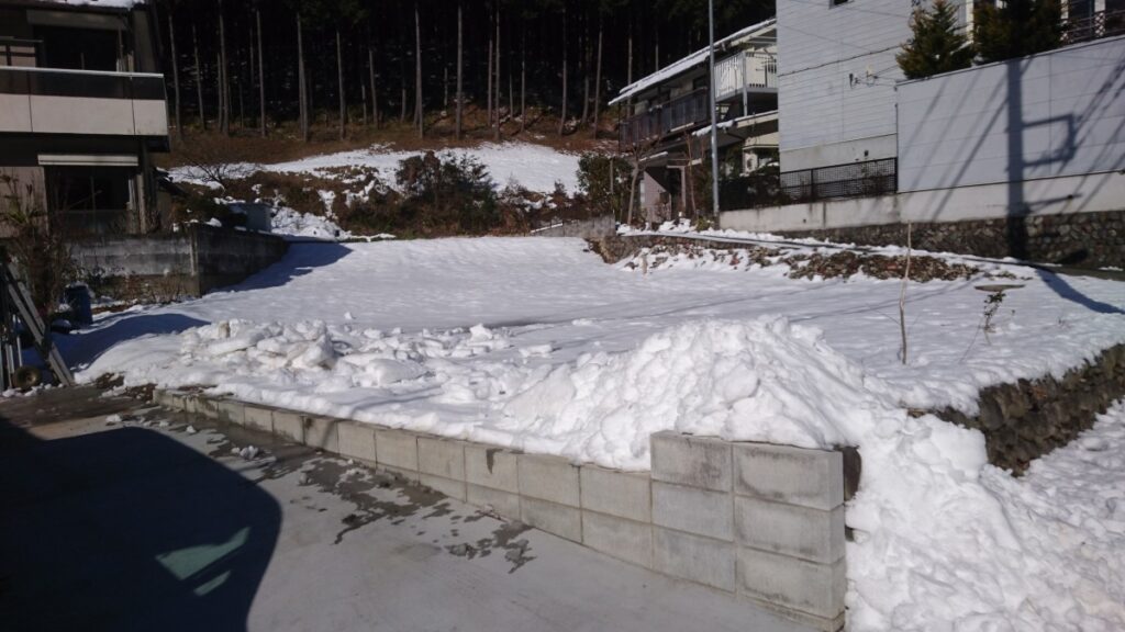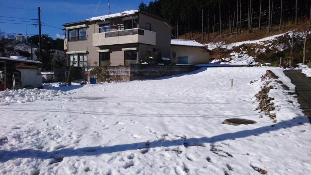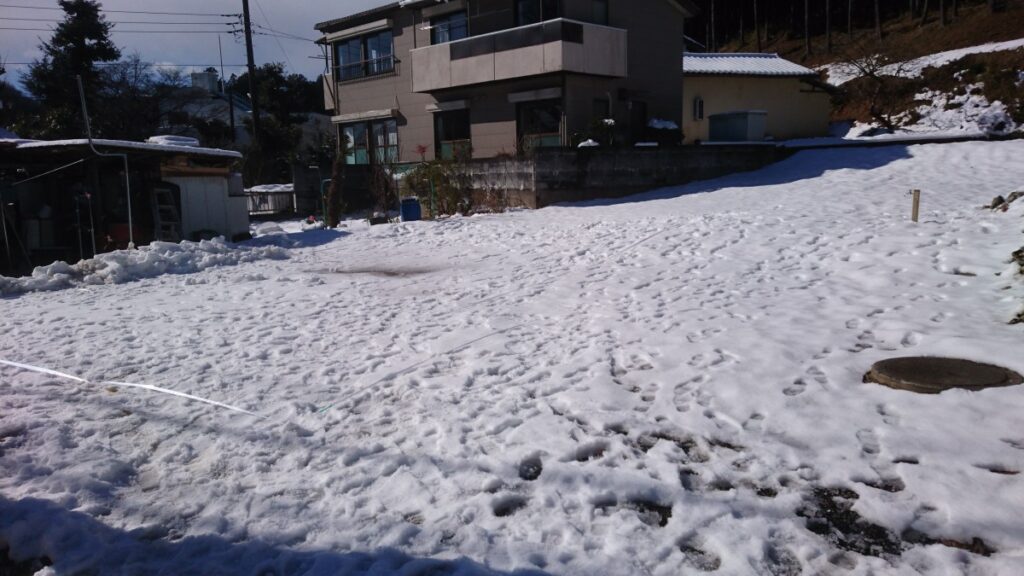 地鎮祭の三日前、東京を襲った雪の影響であたり一面雪化粧です。