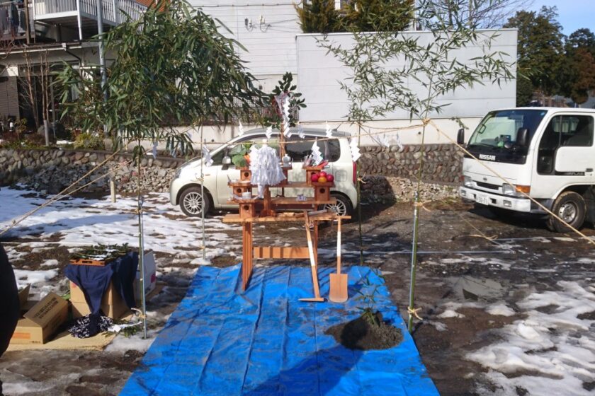 衣食住+仕事 事務所併用住宅 青梅市根ヶ布H様邸新築工事(地縄張り・地鎮祭)