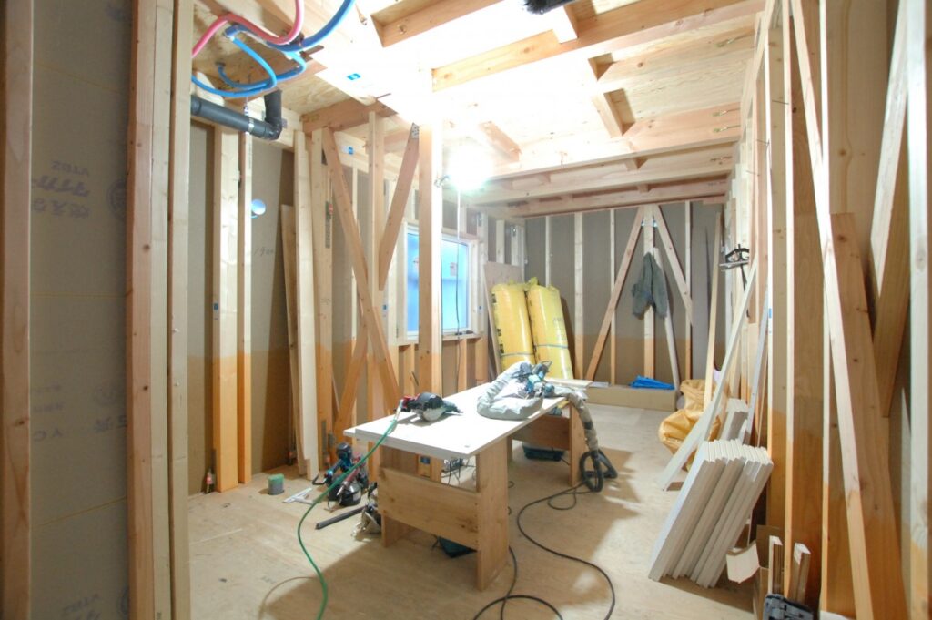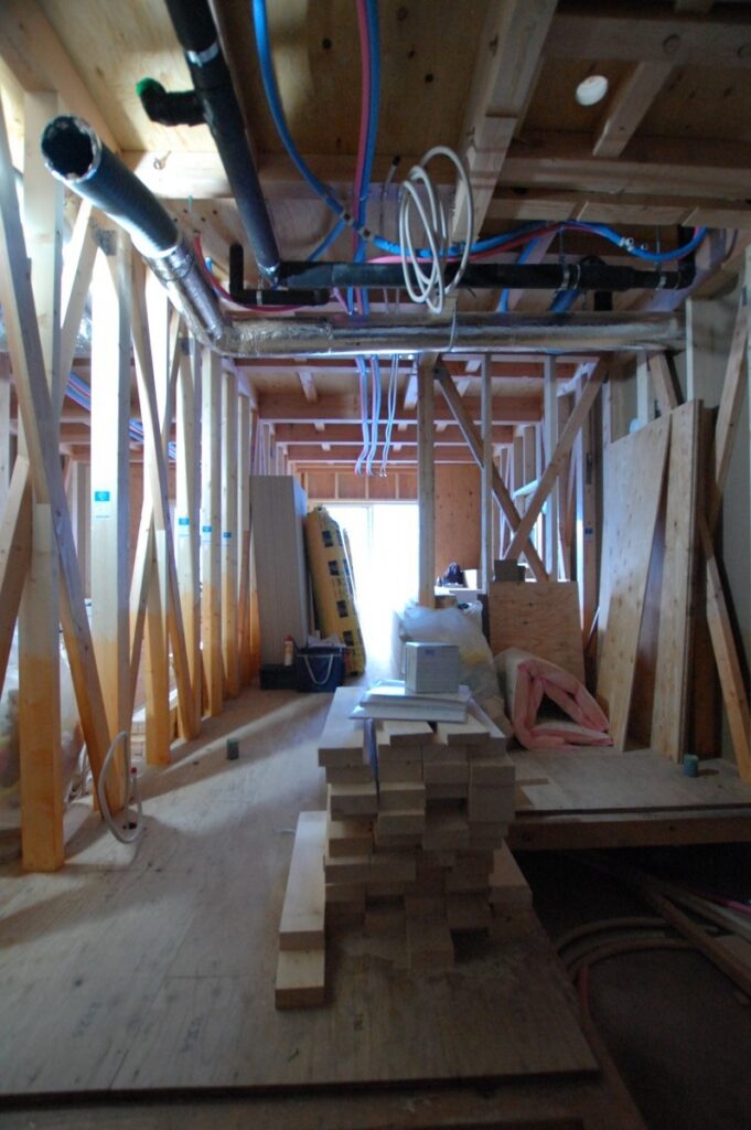 大工工事もだいぶ進んで設備工事も入っております。
