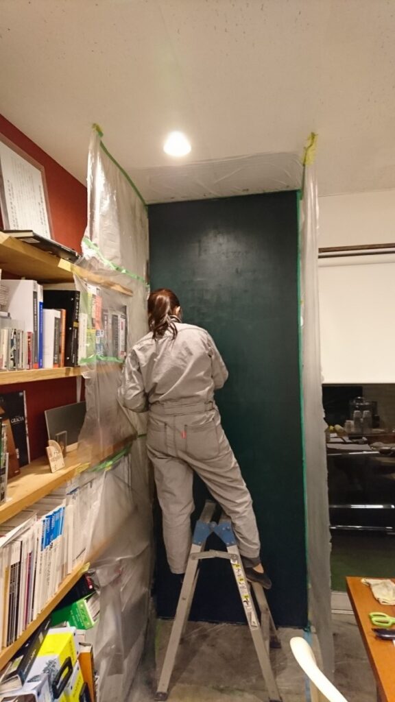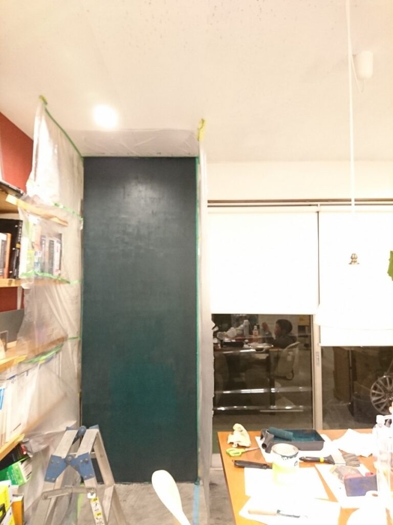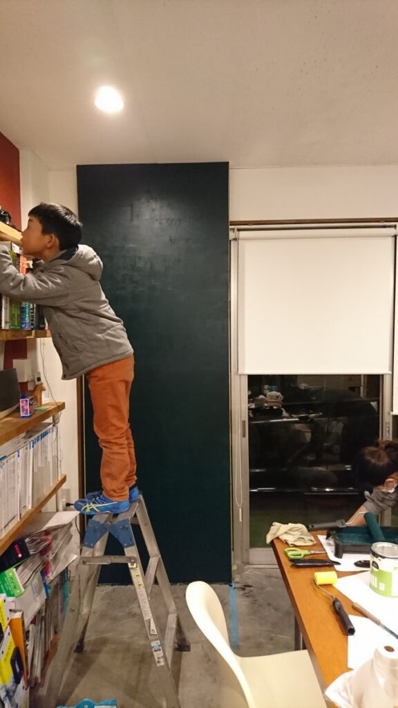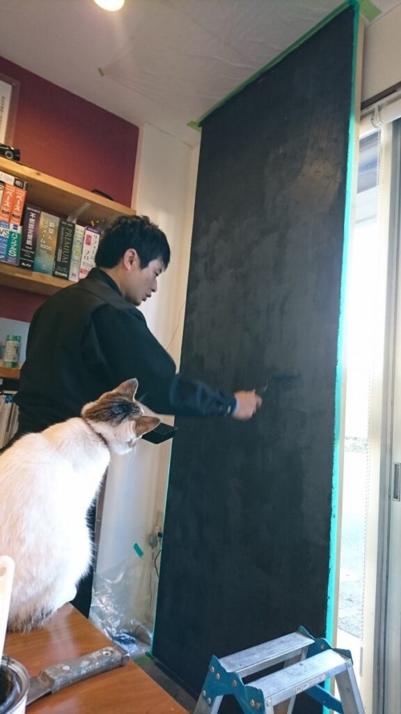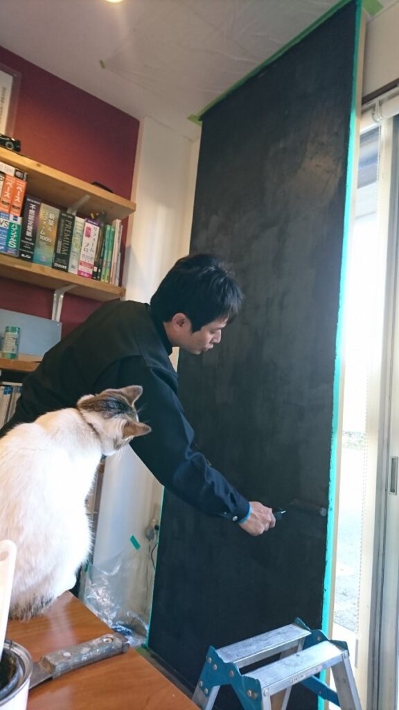 このスペースに大きな黒板を作るとご来店いただいたお客様のお子様が遊べるのではないか?と。
