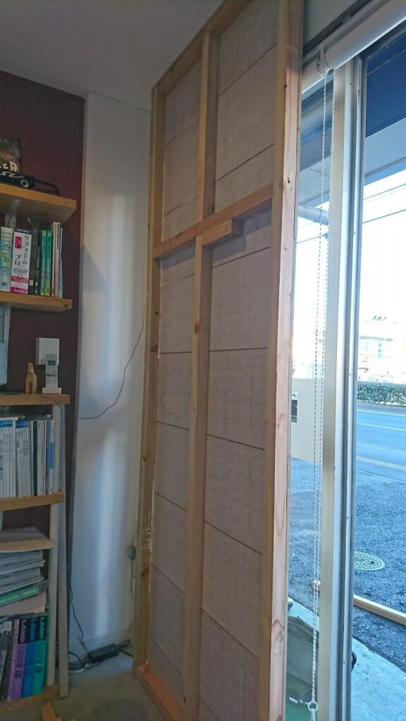 裏をシナベニア5㎜で下地を作りました。もちろんこのときは、フローリングギャラリーにしようとしていたのでシナベニアという高級な材料で作ってしまいましたが、塗装をするのであれば、ラワンべニアでも良かったですね。