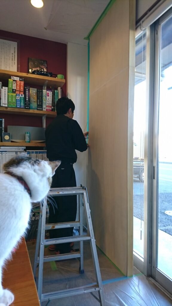 マスキングを行い、ひたすらローラーでころころ、コロコロ。