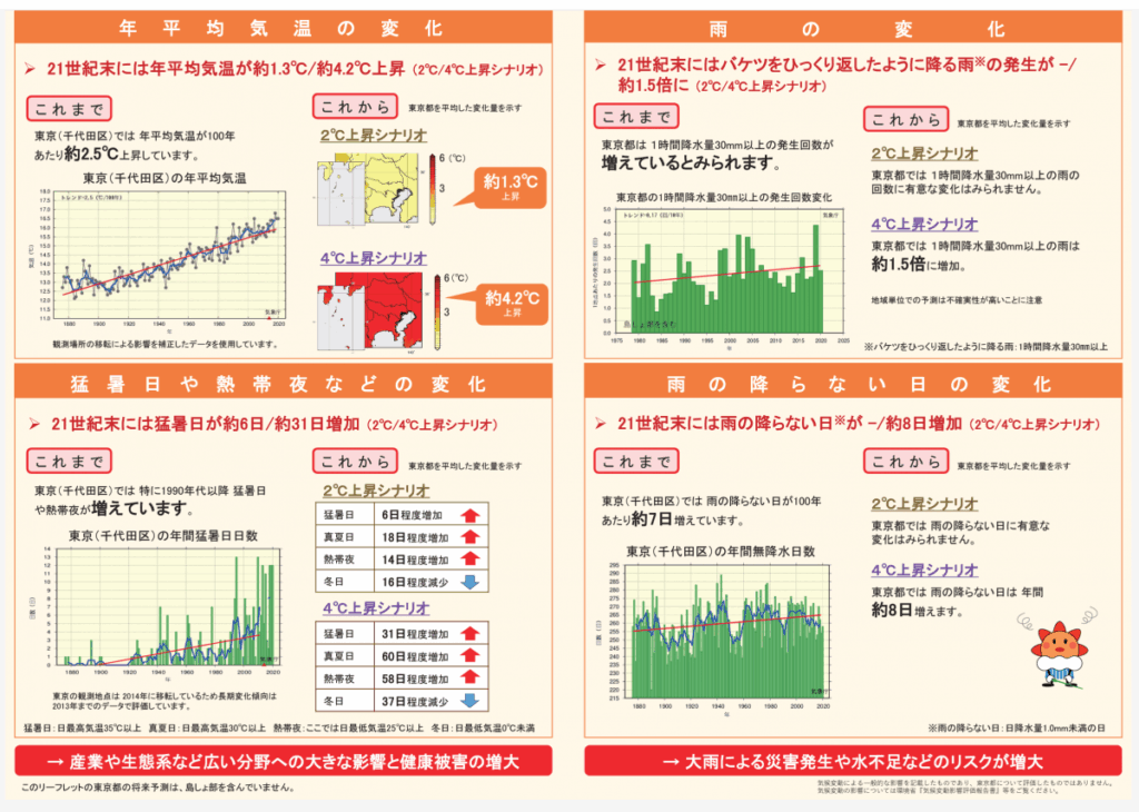 実際、東京(千代田区)では、平均気温が100年で約2.5℃も上昇しているとの事です。