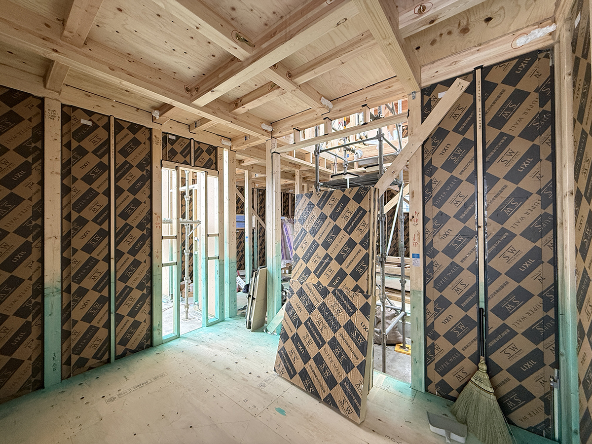 スーパーウォール工法のモノコック構造により、地震や台風の外力を建物全体に分散させ、変形しにくい構造を実現しています。