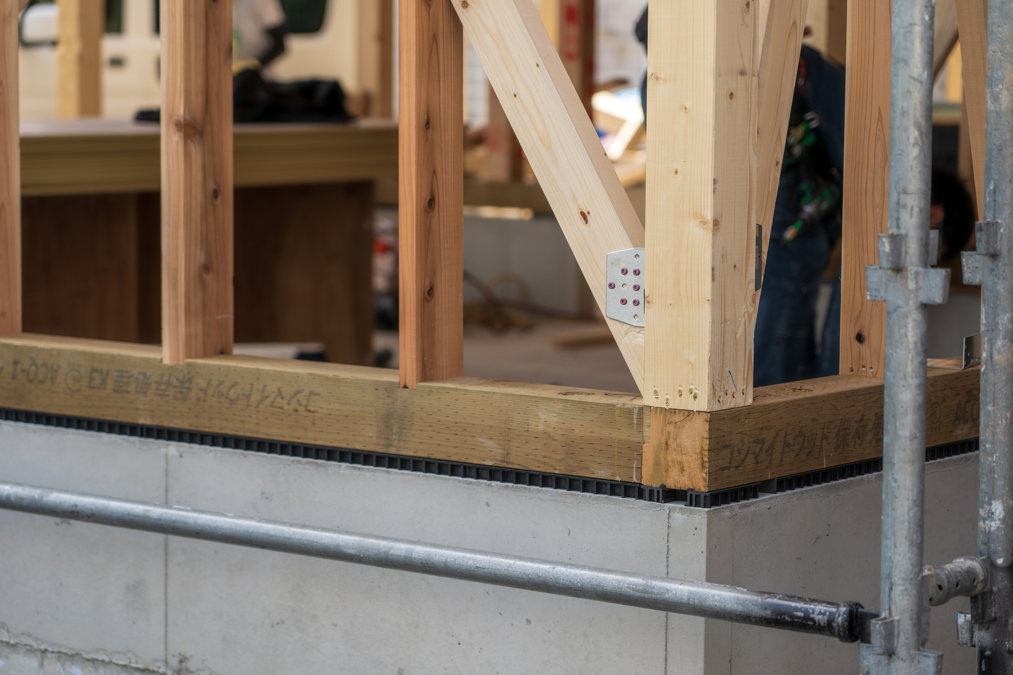 一般的な農薬系殺虫剤ではなく、人やペットに無害な鉱物系の「ホウ酸処理」を標準仕様として採用しています。ホウ酸の効果は半永久的に持続し、シロアリ対策だけでなく腐れやカビの発生も抑制します。